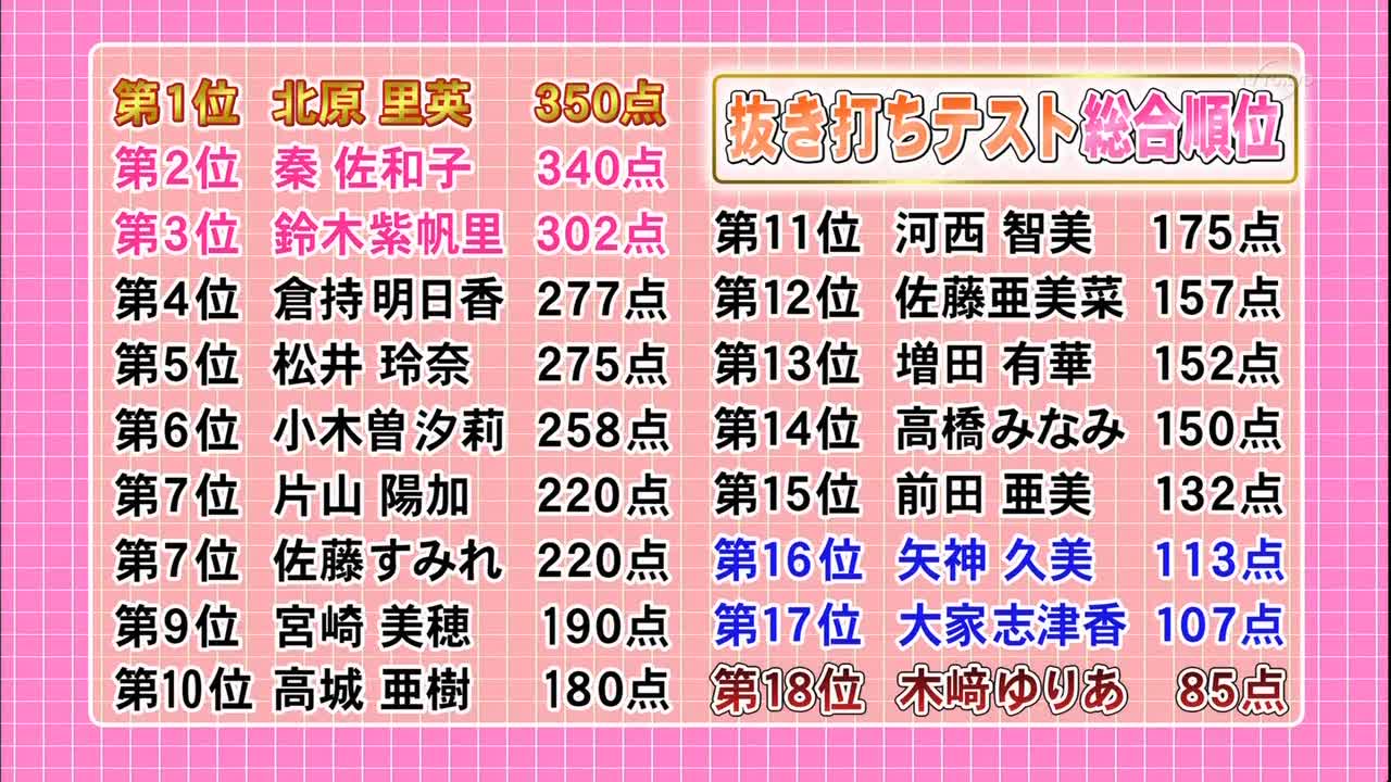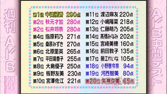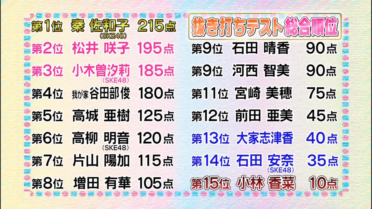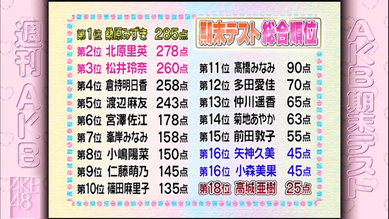 週刊AKBの抜き打ちテストの成績