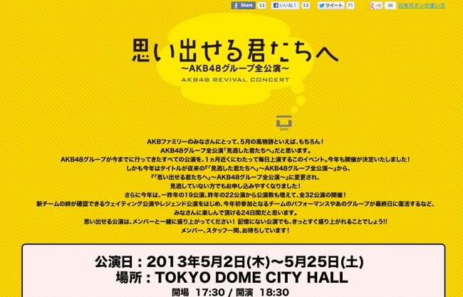 しかも今年はタイトルが従来の『「見逃した君たちへ」~AKB48グループ全公演~』から、