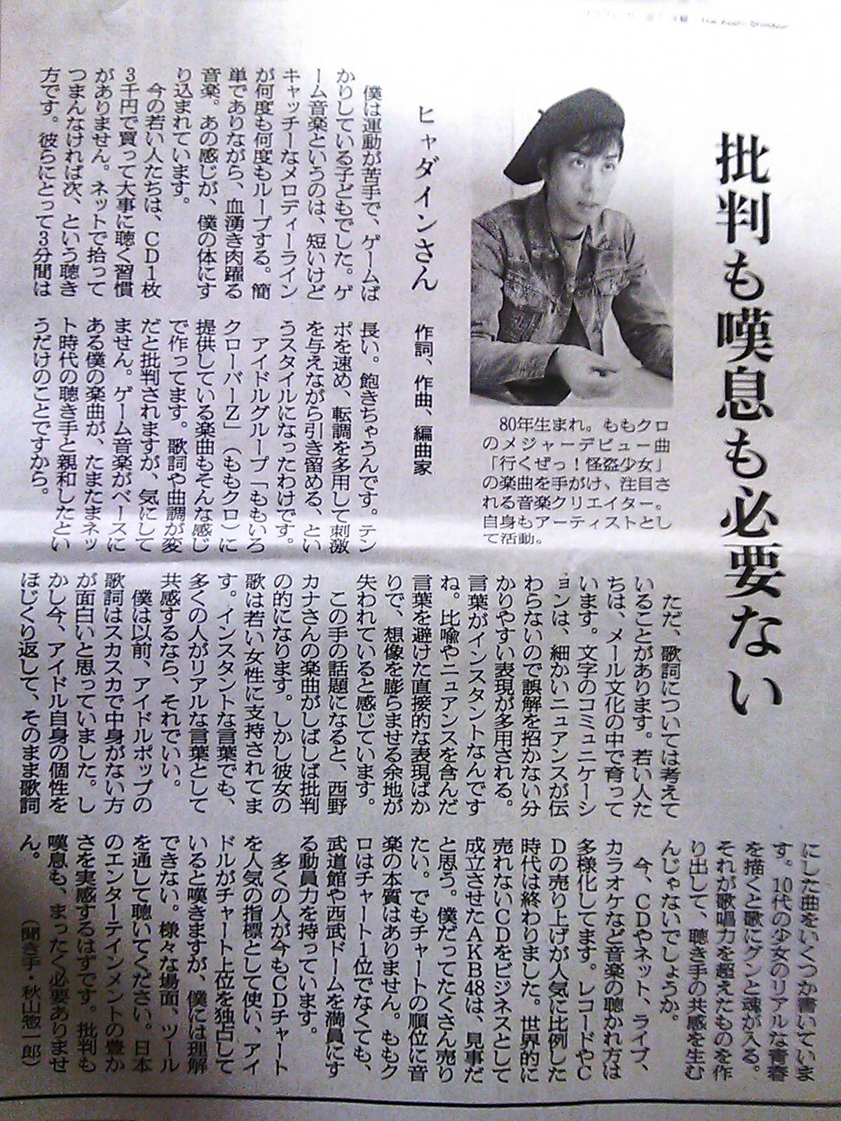 ヒャダインより服部御大の記事の方が面白い