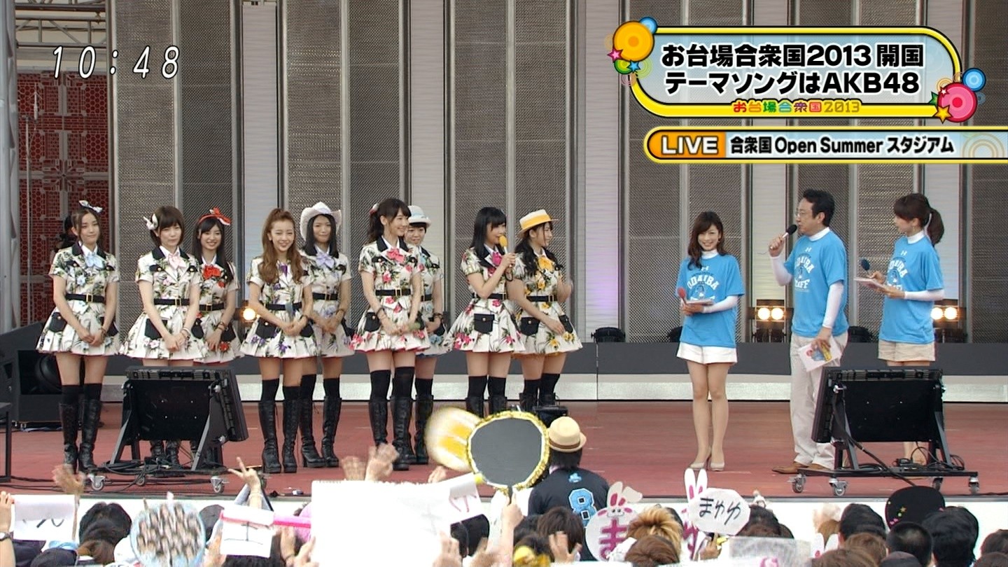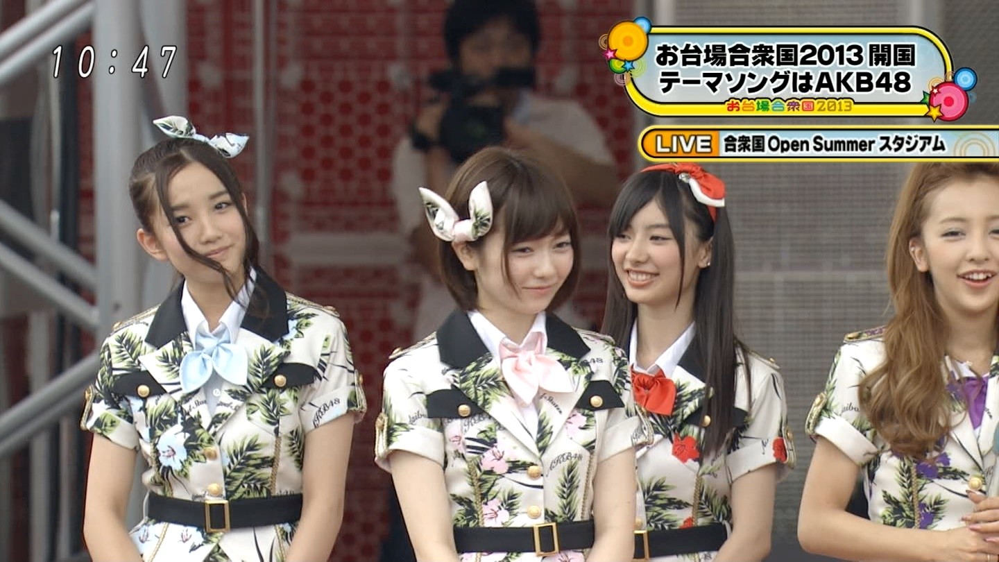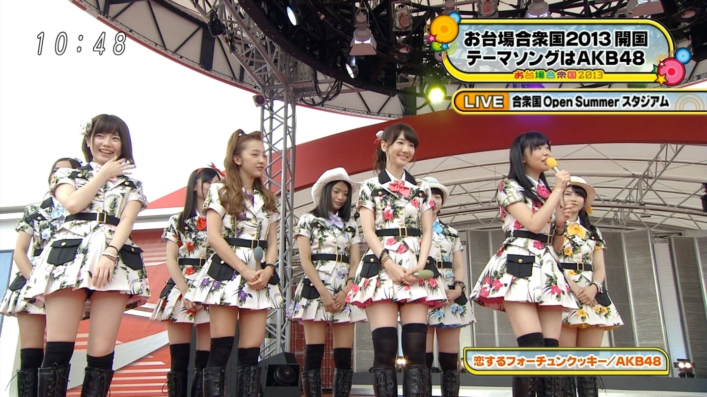 人気アイドルグループ・AKB48が13日、東京・お台場で開催された「お台場合衆国2013」初日オープニングスペシャルライブに登場した。同イベントのテーマ曲でもあり、HKT48の指原莉乃がセンターを務める新曲「恋するフォーチュンクッキー」など全6曲を熱唱し、会場のファン3,000名を総立ちにさせた。