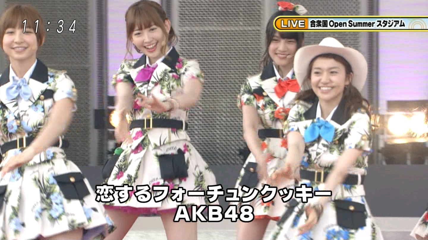 うだるような暑さの中、ライブは「恋するフォーチュンクッキー」で開幕。センターの指原は、総監督を務める高橋より前々から「センターなのに笑顔が引きつっている」と心配されていたものの、ファンを総立ちにさせ、続けて「Everyday、カチューシャ」「ギンガムチェック」「真夏のSounds good !」「さよならクロール」、さらに、アンコールで「ヘビーローテーション」を熱唱。エネルギッシュなパフォーマンスで、夏の暑さを吹き飛ばした。