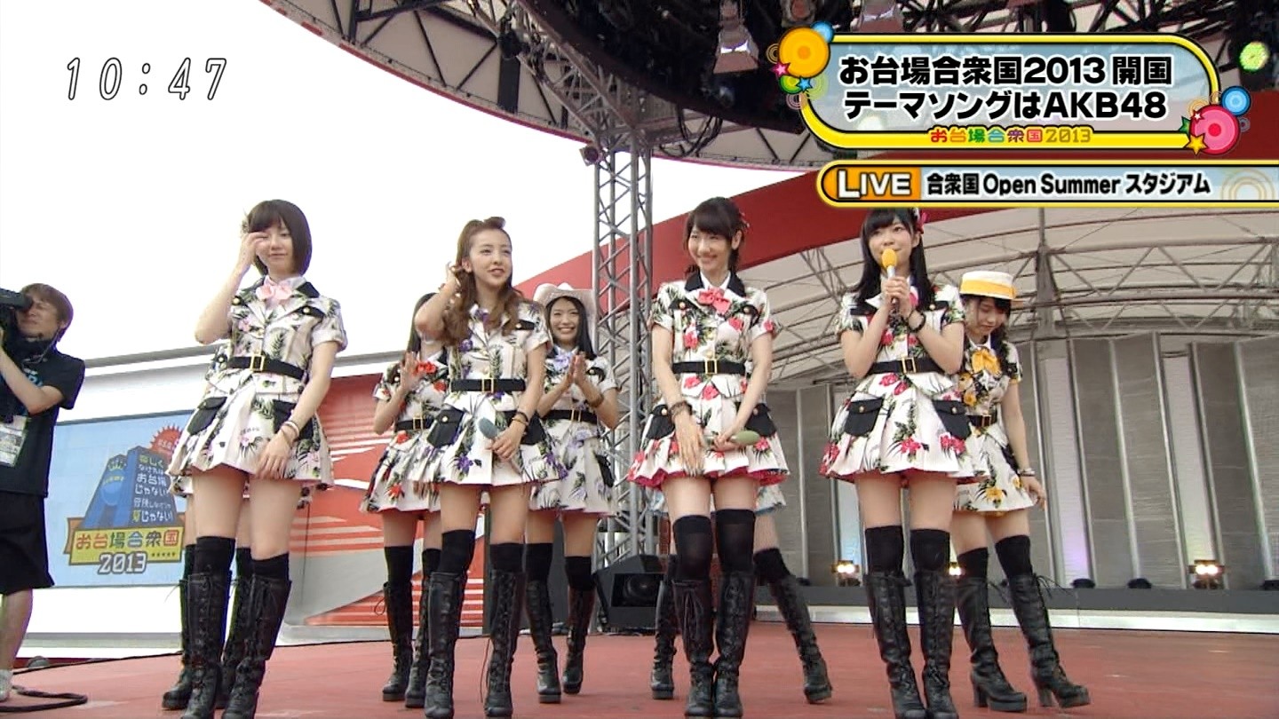 「お台場合衆国」はフジテレビが2009年から夏に開催している恒例イベントで、今年は「楽しくなければお台場じゃない!冒険しなけりゃ夏じゃない!」をテーマに開催。会場内ではイメージキャラクターを務めるAKB48の「AKB48お台場りんかい学校」なども設置される。(中村好伸)