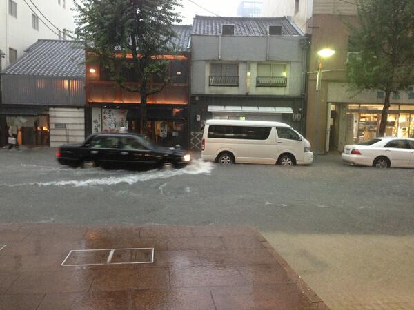 名古屋大雨 栄の道路冠水してます