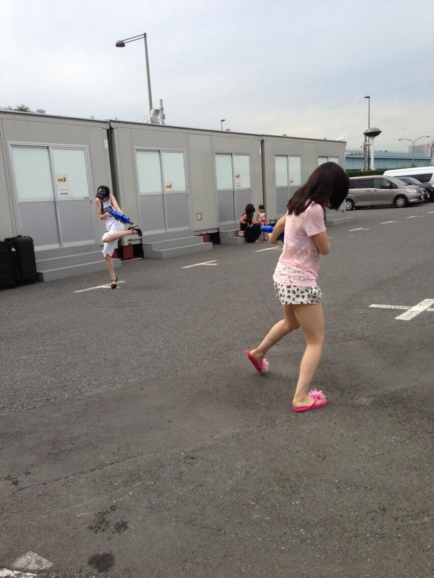 めざましライブにてゆっことあんなの水鉄砲合戦。 pic.twitter.com/19GqJkkQFT